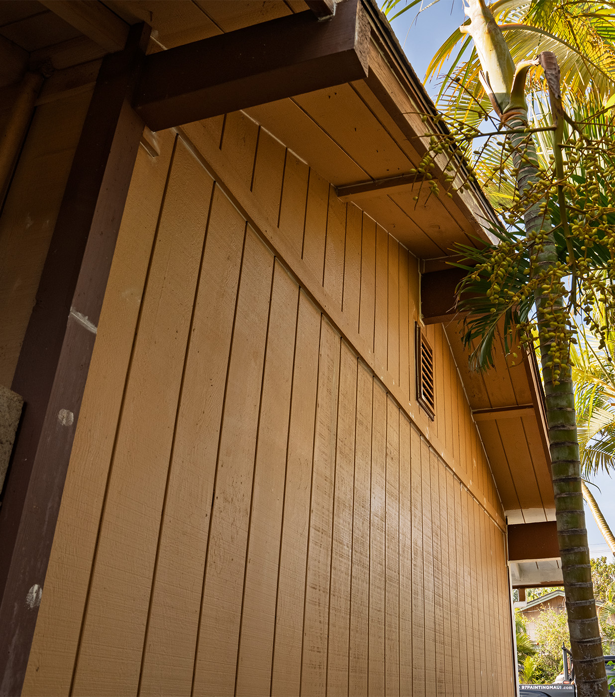 97 Painting Maui, Tan wood siding on house