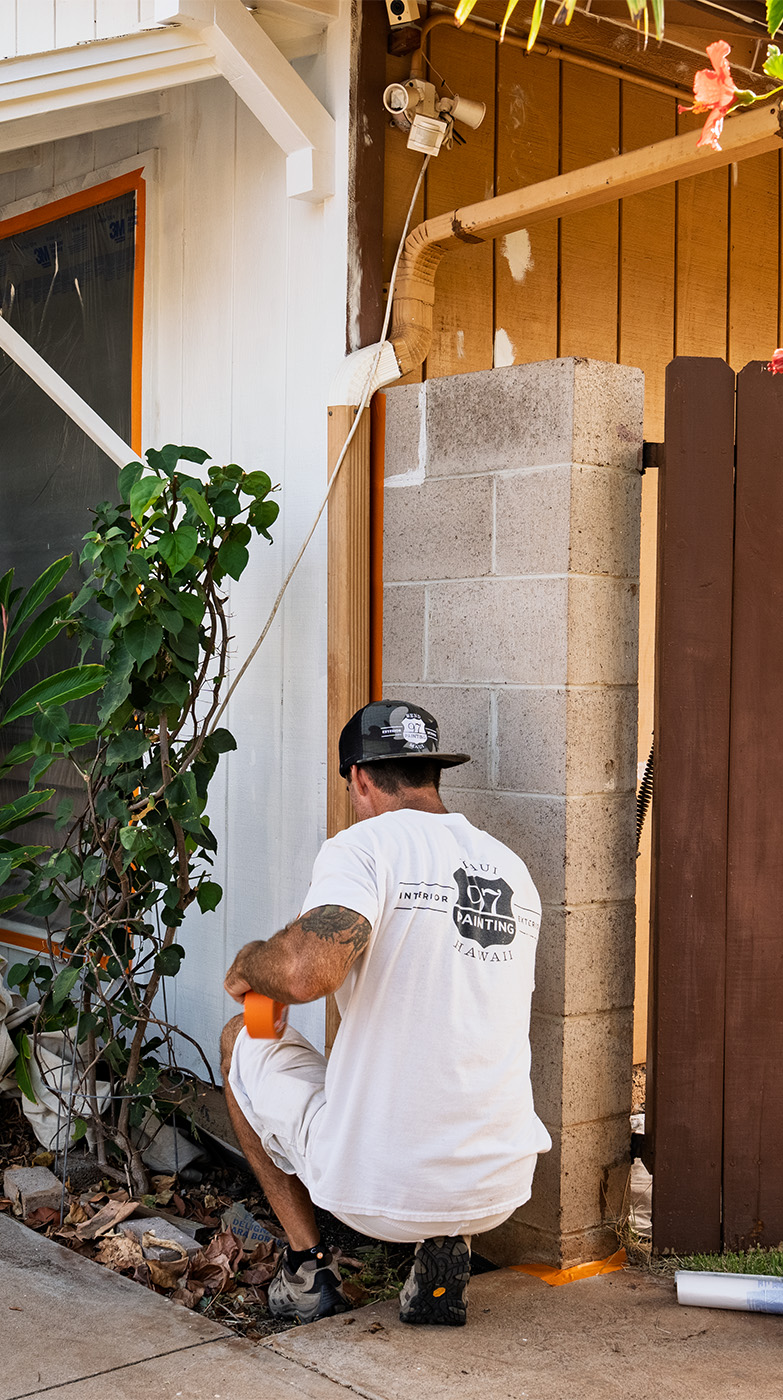 97 Painting Maui, Painter prepping exterior wall